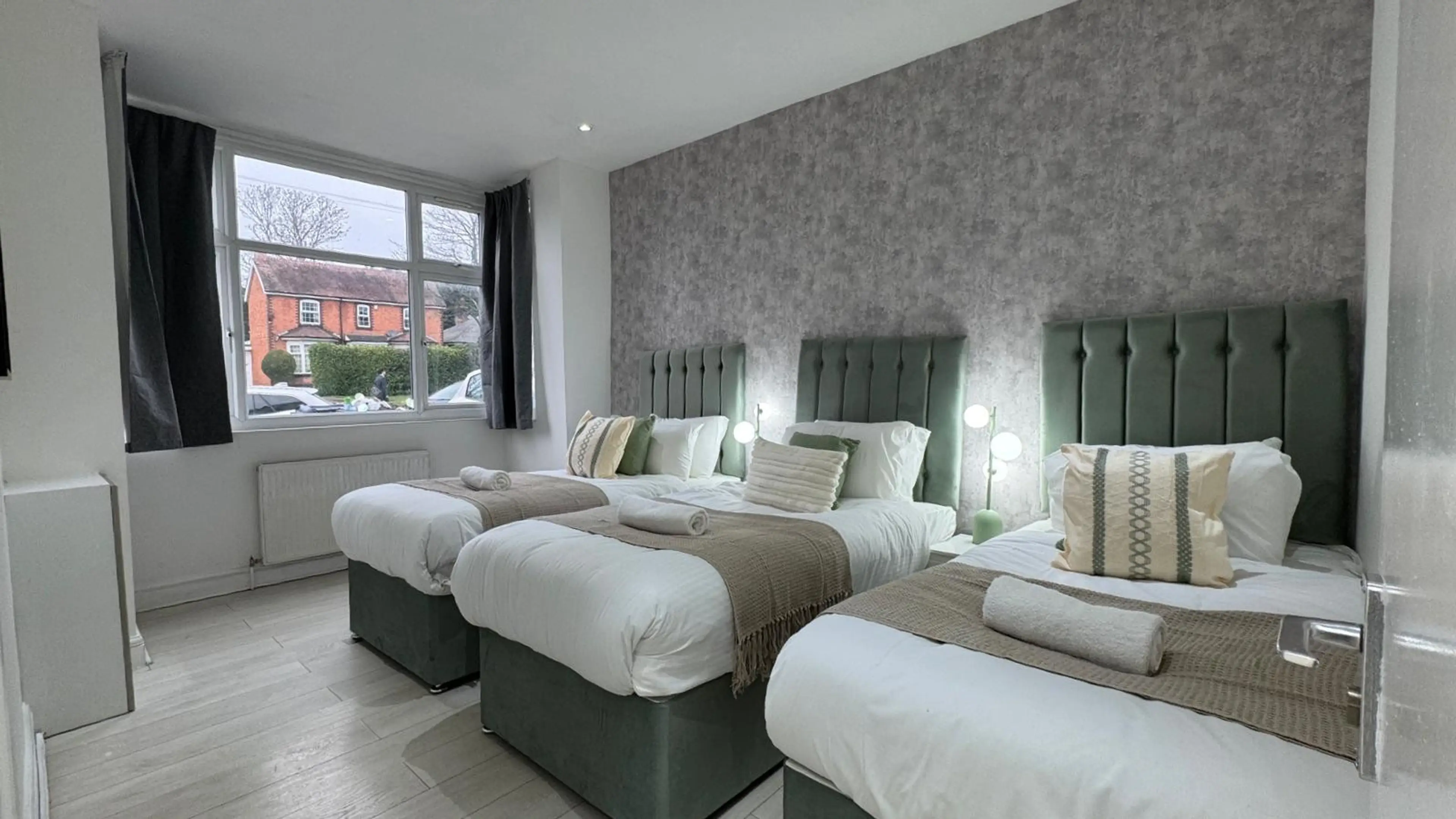 Negative: There was no letter box on the front door. The stair floor boards underneath the carpet were so wobbly it was like walking up and down in one of those crooked haunted houses at the fairground. The sofas had a thick amount of dust underneath them as well as rubbish. Rubbish was also found under one of the beds. By this point I stopped looking under anything else. One of the sofas recliner operation was not functioning at all. There was a stain on the bathroom blinds. Stains on a couple of the bed blankets. The internet connection was appalling.The upstairs shower door kept moving when taking a shower, so as one moved to bathe, the water leaked out and leaked into the kitchen ceiling. There was a dent from the bathroom handle on the bathroom wall tiling. A bedroom lam was cracked and damaged. The wardrobe in the front bedroom 1st floor of the house was leaning forward as if it were about to fall over.